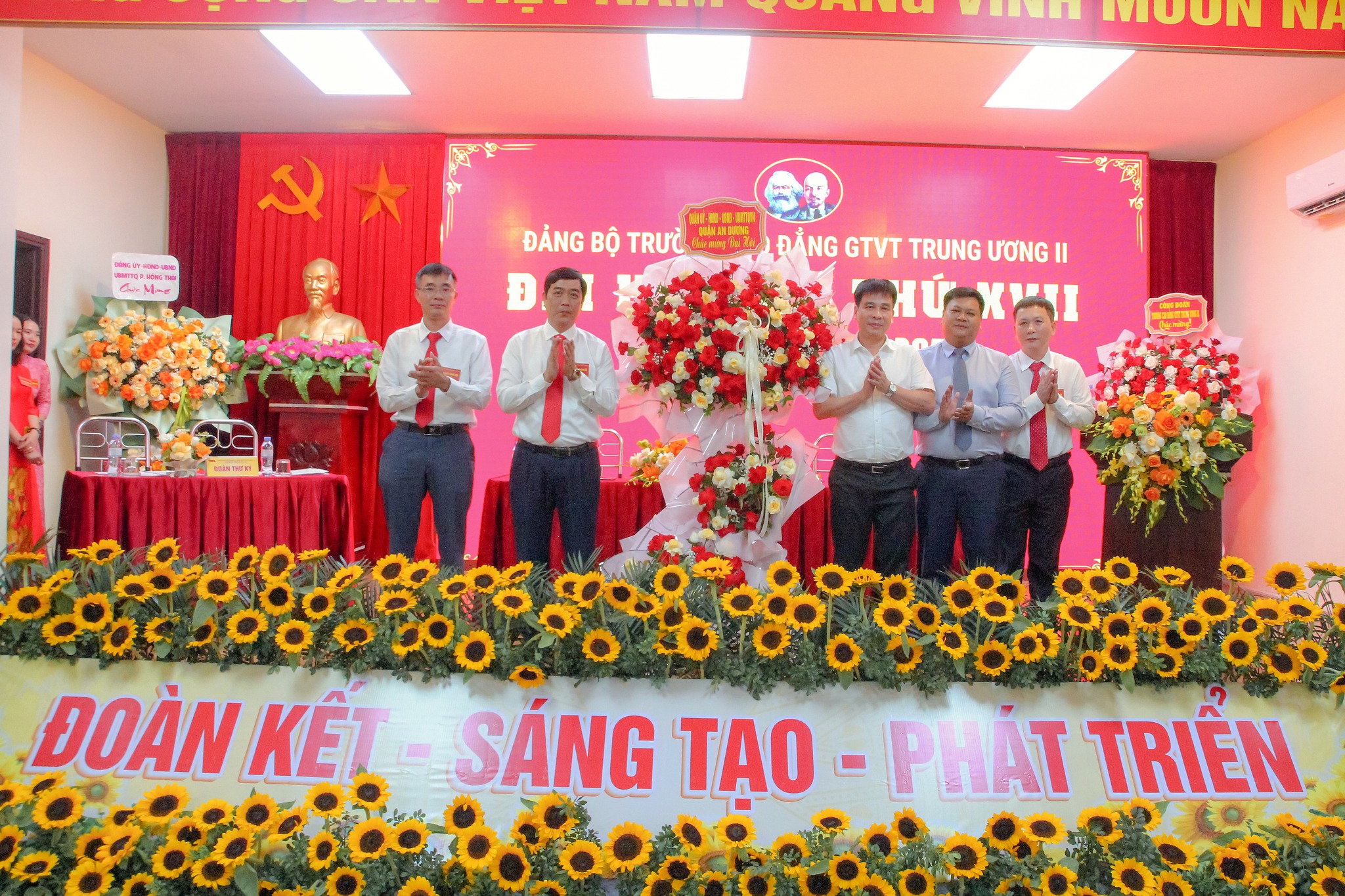 Dự và chỉ đạo Đại hội có: đồng chí Lương Thế Quý – Phó Bí thư Thường trực Quận ủy, Chủ tịch HĐND, đồng chí Chu Đức Anh – Phó Bí thư Quận ủy, Chủ tịch UBND quận An Dương; đồng chí Phạm Hải Nam – Ủy viên BTV, Chủ nhiệm Ủy ban kiểm tra, trưởng Đoàn công tác số 2; các đồng chí trong Đoàn công tác số 2 chỉ đạo Đại hội cơ sở của Quận ủy An Dương; đại diện lãnh đạo, các ban Xây dựng Đảng, quận ủy An Dương; đại diện lãnh đạo Đảng ủy, HĐND, UBND, UBMTTQ phường Hồng Thái; cùng toàn thể 126 đảng viên thuộc 9 chi bộ trực thuộc Đảng bộ Nhà trường.